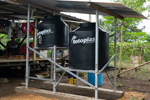 Los sistemas familiares de purificación de agua de lluvia son infraestructuras prácticas y sencillas de provisión de agua de calidad a través de un proceso de filtración lenta del agua de lluvia. Desde el año 2010 el FDA viene implementando este tipo de iniciativas, con apoyo financiero de Manos Unidas, en las provincias de Orellana y Sucumbíos. Sin embargo, es importante resaltar que el acceso a agua para el consumo humano es un derecho que tiene que ser garantizado por el Estado a través de los gobiernos municipales.